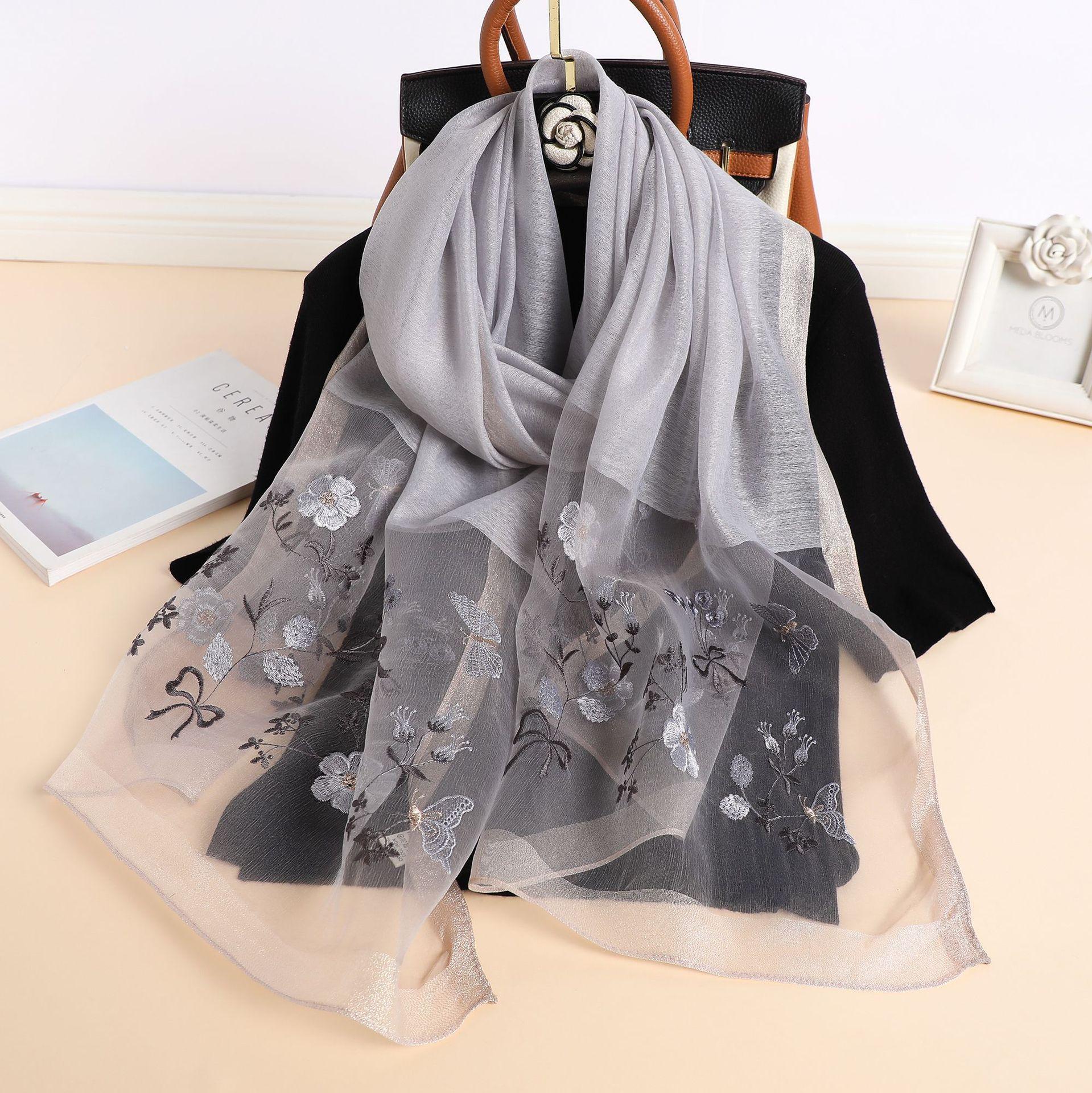 Осень и Зима Имитация Шелка Солнцезащитный Вышивка Длинный Шелковый Шарф Темперамент Универсальная Шаль Теплый Вышитый Шарф Женский 180*70cm