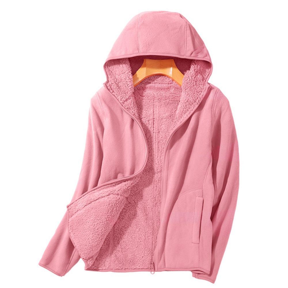 Осень и Зима Коралловый Флис Флисовая Толстовка с Капюшоном Флисовая Куртка Женская Теплая Утепленная Уличная Куртка Подкладка XS розовый