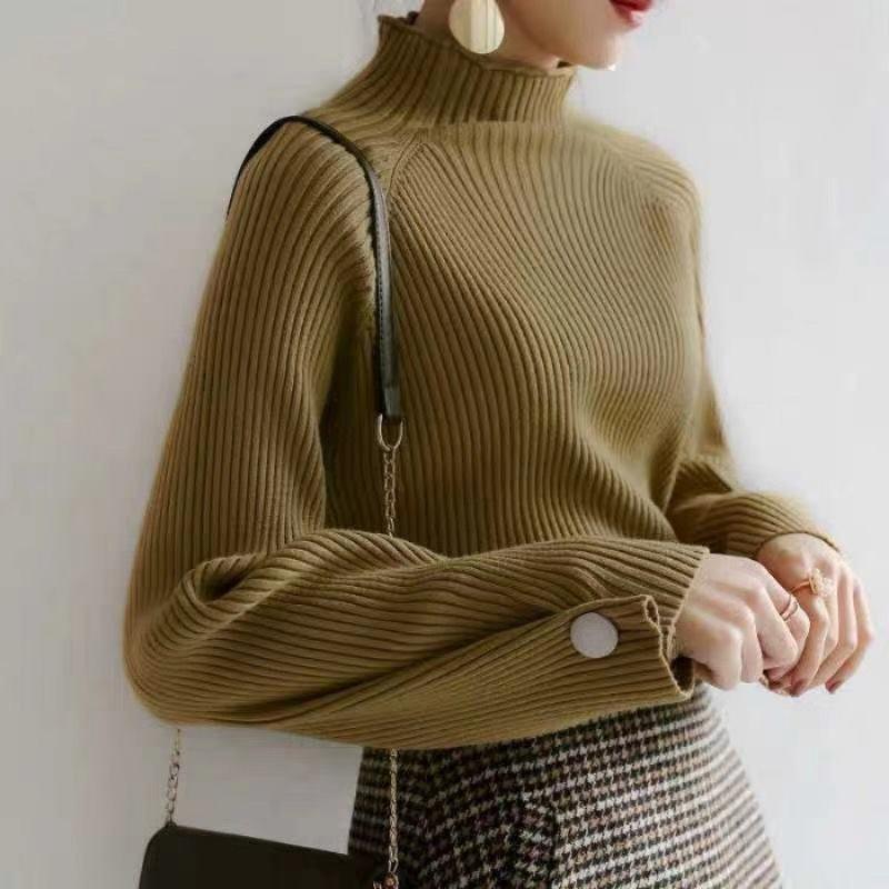 Осень и Зима Корейский Стиль Новая Простая Базовая Футболка Свитер с Полувысоким Горлом для Женщин Удобный и Универсальный Свитер с Длинным Рукавом для Внутренней Носки One Size