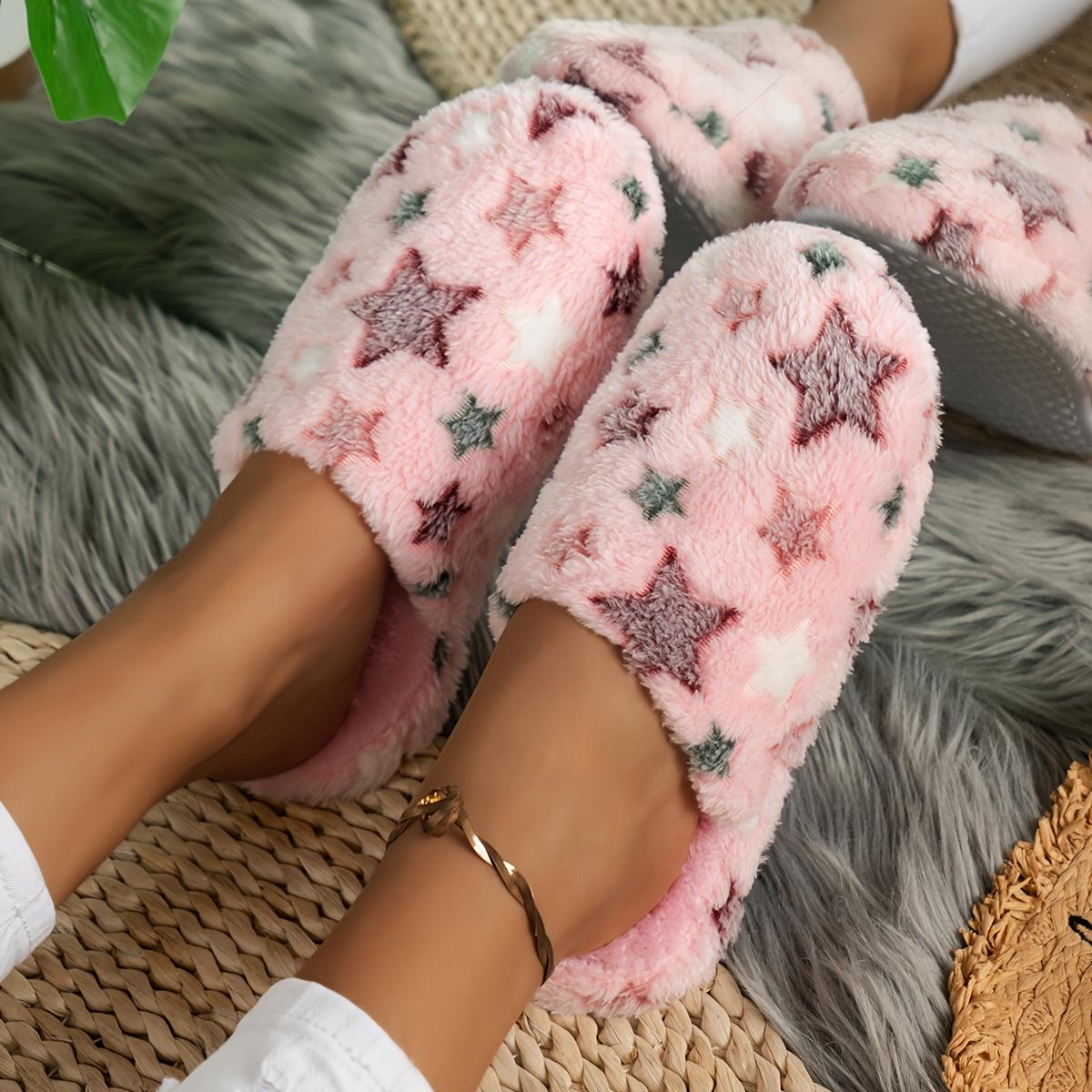 Осень и Зима Красочные Звездные Плюшевые Утепленные Теплые и Удобные Закрытые Пушистые Тапочки для Женщин, Домашние Тапочки 38-39