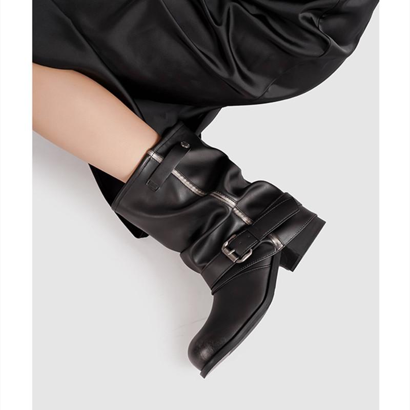 Осень Зима Лакированная кожа Женские полусапоги мотоциклетные повседневные на толстом высоком каблуке с ремешком и пряжкой панк рыцарские ботильоны 40 чёрный
