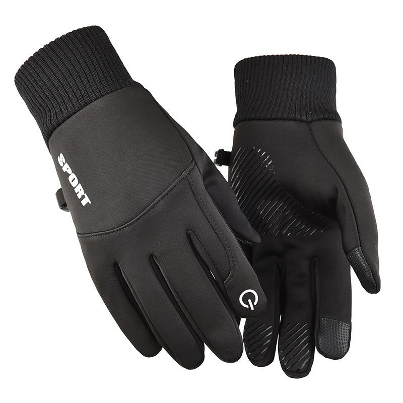 Осень и Зима Мужские Перчатки Флис Теплые Спортивные Велоспорт На Открытом Воздухе Альпинизм Лыжи Перчатки с Сенсорным Экраном One size чёрный