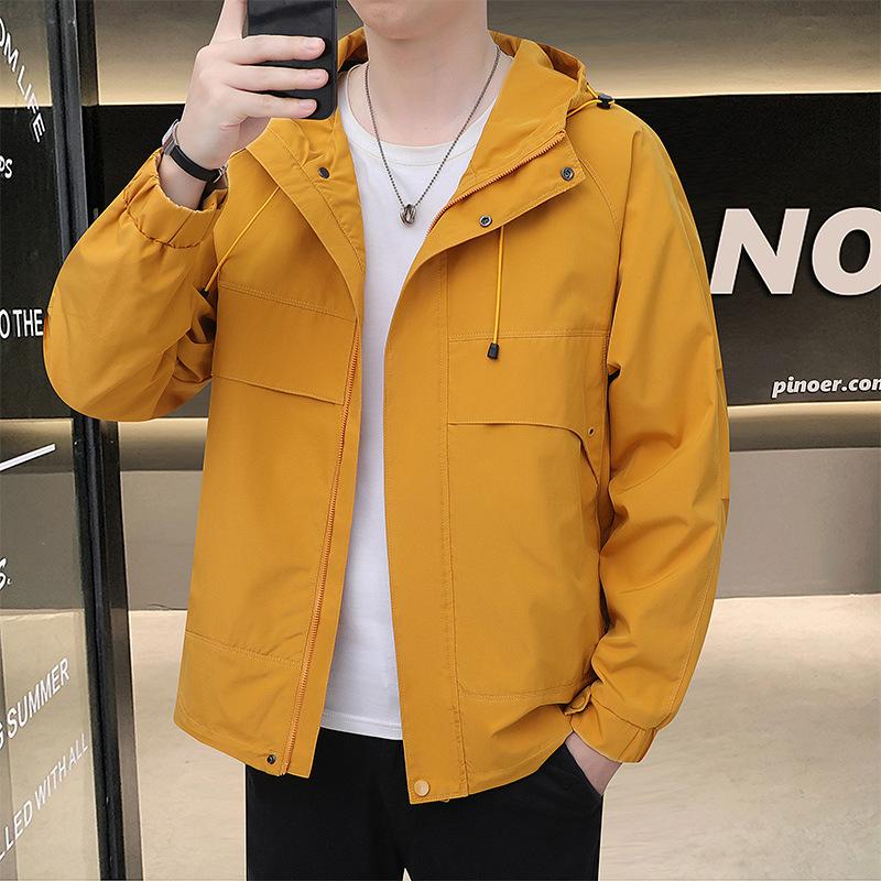 Осень и Зима Новая Куртка Мужская Куртка в Стиле Милитари Молодежная Ветрозащитная Водонепроницаемая Куртка для Активного Отдыха Куртка с Капюшоном Однотонная S жёлтый