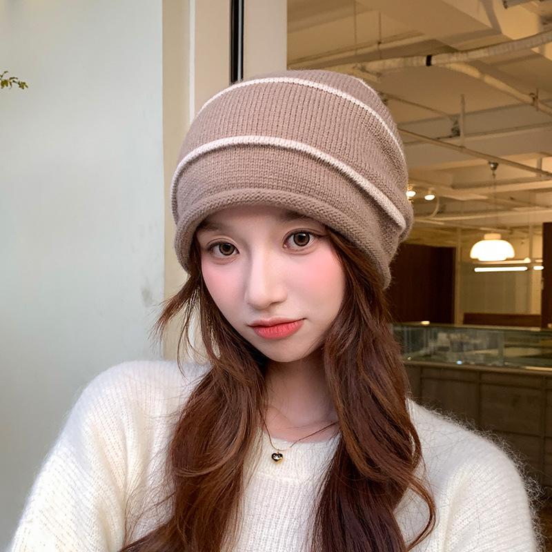 Осень и Зима Новая Полосатая Шапка-Бини Корейский Стиль Теплая Шерстяная Шапка Универсальная Защита Ушей Вязаная Велосипедная Защита от Холода Шапка-Пуловер One Size