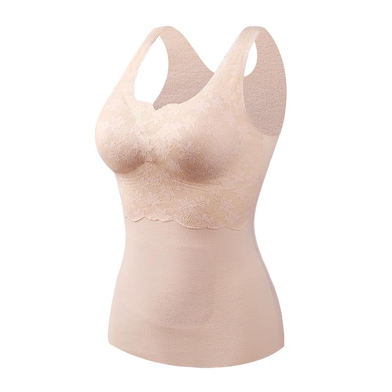 Осень и Зима Новые Плюшевые и Утепленные Теплые Жилеты Термобелье Топы без Рукавов Бесшовный Базовый Слой Женская Теплая Одежда 2XL бежевый