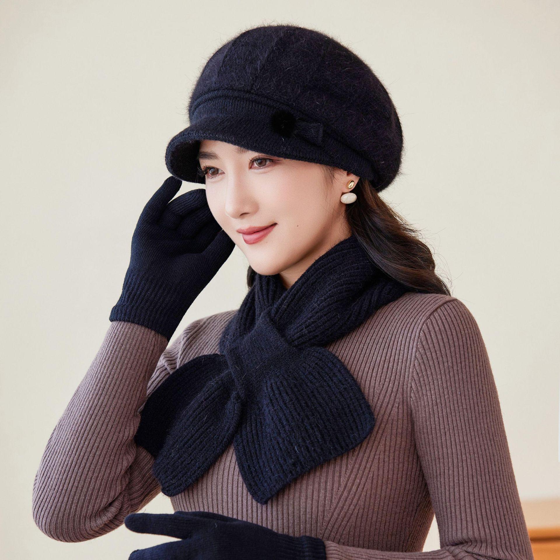 Осень и Зима Среднего и Пожилого Возраста Шляпа Матери Кролик Плюшевая Шерстяная Шляпа Пожилая Женщина Утиный Язычок Женская Плюс Бархатная Теплая Вязаная Шапка one size