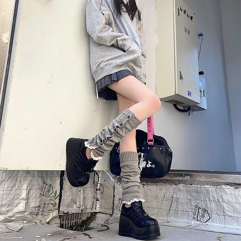 Осень Зима Японский Стиль Теплые До середины икры Милые Кружевные Носки Вязаные Помпоны Свободные Гетры для икр для Женщин