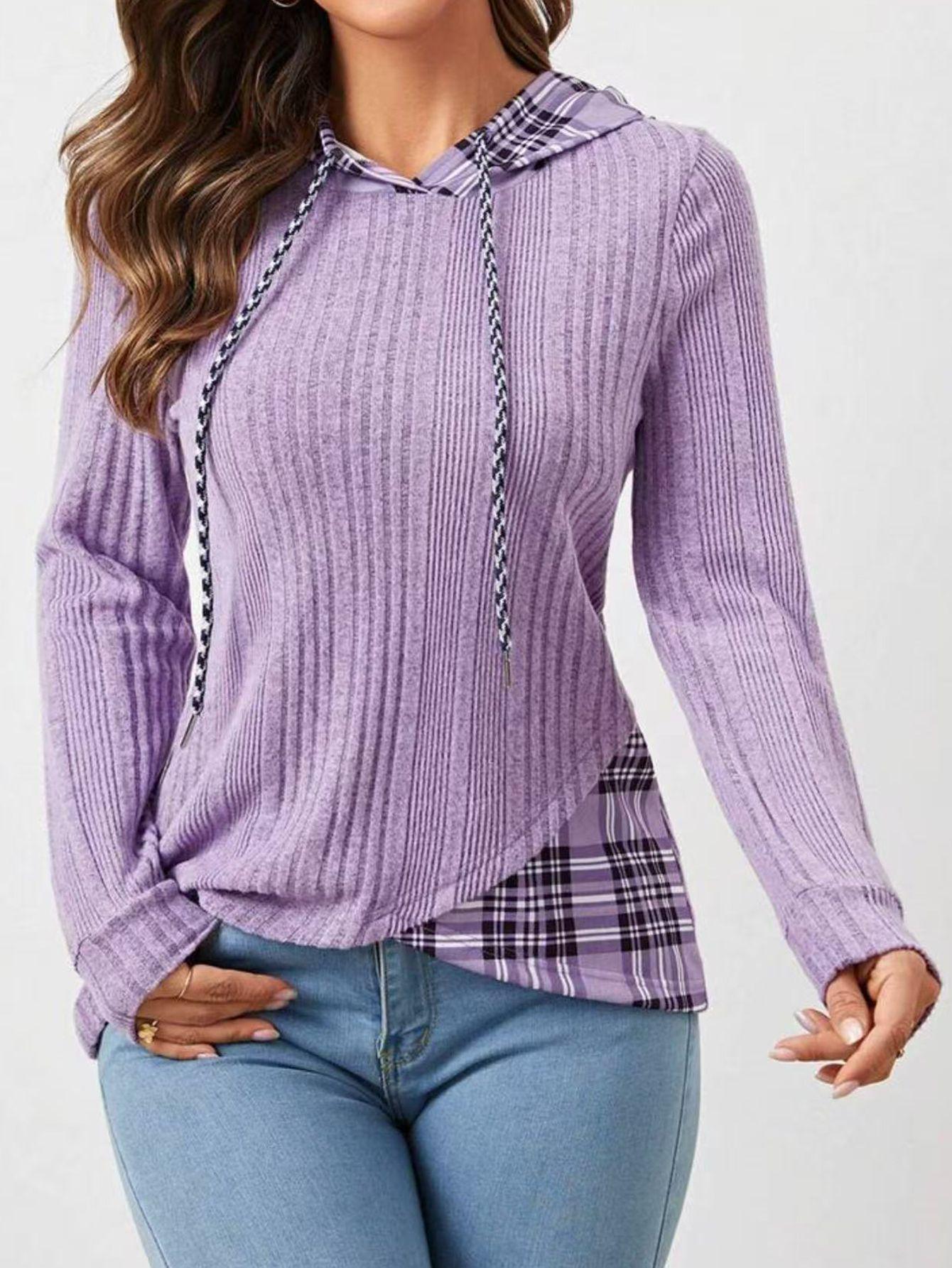 Осень/Зима 2025 Европейско-американское вязаное худи пэчворк с цветовыми блоками Extra Large фиолетовый
