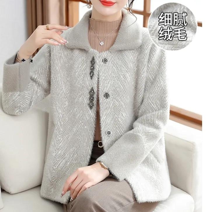 Осень И Зима Новое Шерстяное Пальто Куртка Для Женщин Среднего И Пожилого Возраста Теплая И Удобная Шерстяная Повседневная Модная Одежда 4XL