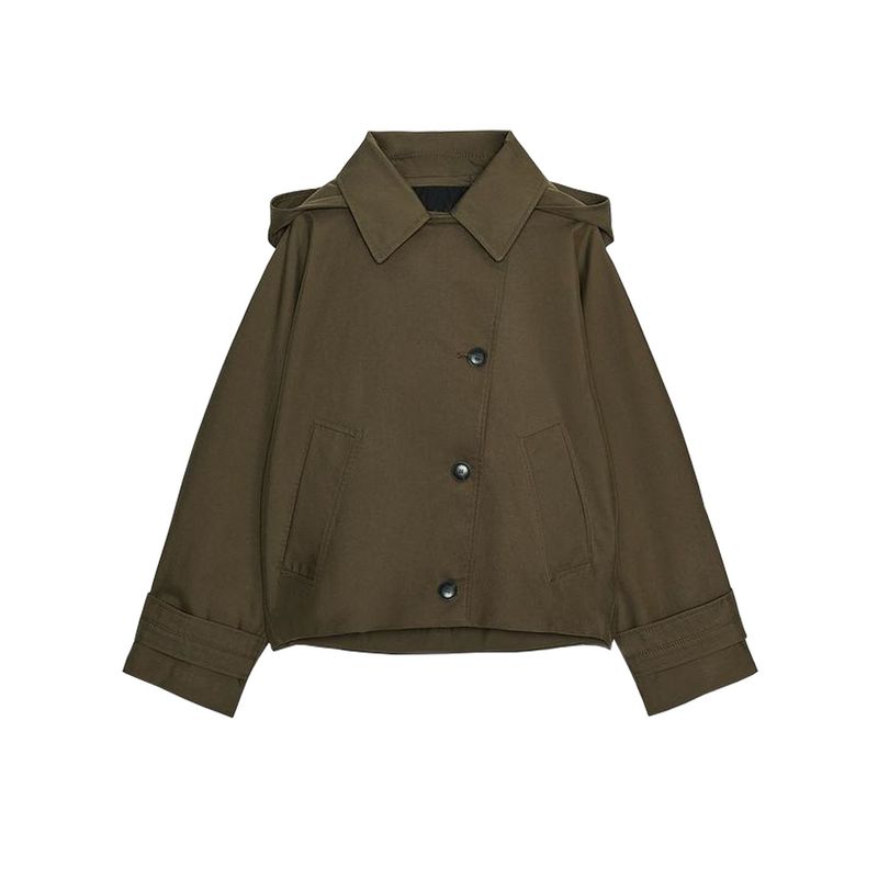 Осень Новое поступление Женская одежда Съемный капюшон Воротник с лацканами Рукав летучая мышь Водонепроницаемый Тренч Короткое пальто 0518242 Shallow khaki XS