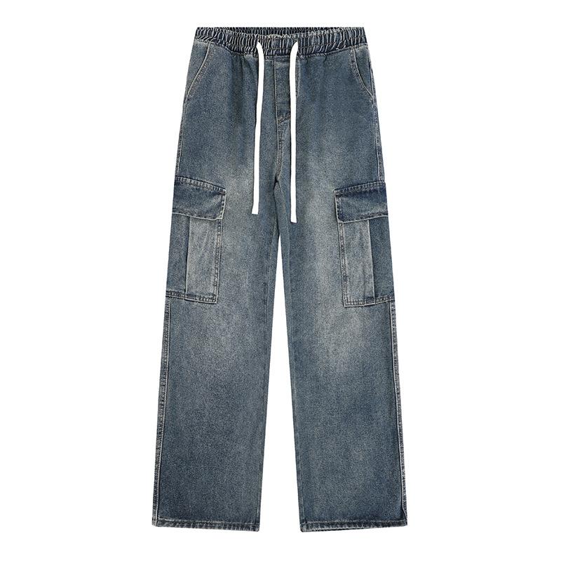 Осень Новые Трехмерные Брюки Карго Мужские Серые Джинсы Прямого Кроя 3XL