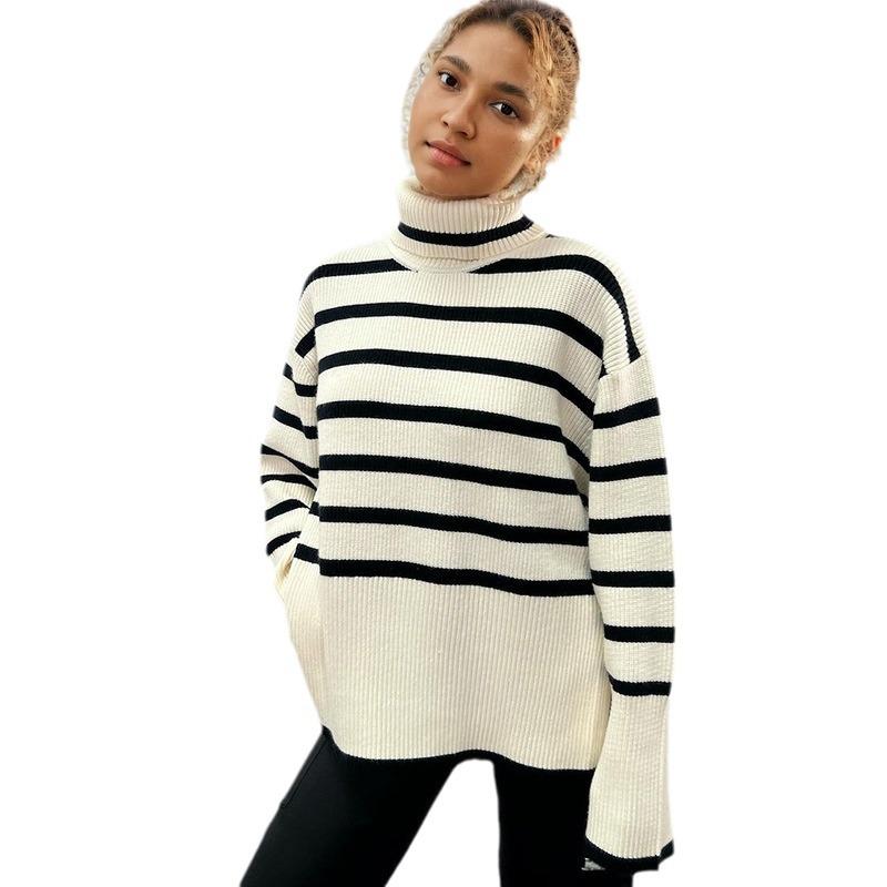 Осень-зима Водолазка Женская Контрастная Цветная Полосатая Джемперы Вязаные Пуловеры Свитера One Size белый