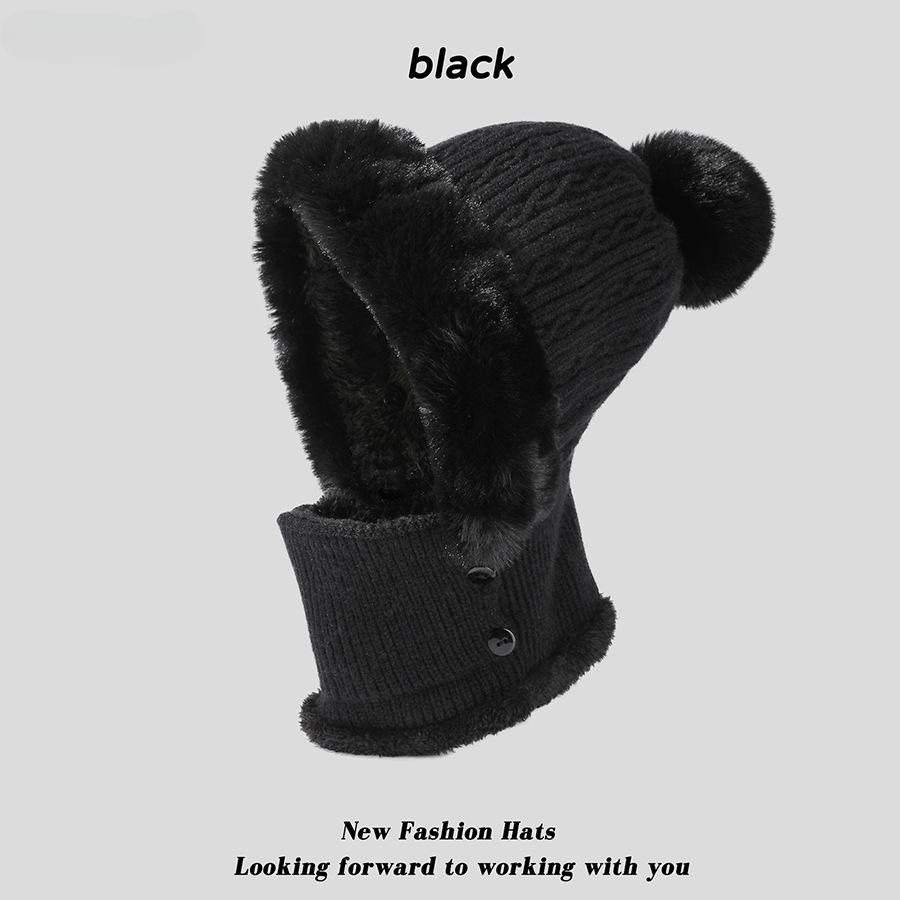 Осень-зима Жареные Тесто Твисты Полосатая Вязаная Шапка Шея Шарф Цельный Плюшевый Комплект Теплые Уши Защита Холодные Шапки Комплект