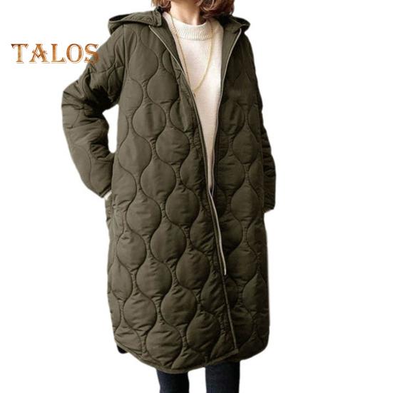 Осень-зима Женская куртка с капюшоном на молнии с ромбовидной текстурой, тонкая подкладка, длинные рукава, средняя длина, свободное повседневное пальто для работы и школы темно-зеленого