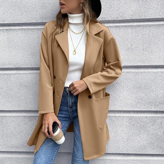 Осень-зима Женское пальто Официальный деловой стиль Отложной воротник Трикотаж Длинные рукава Двубортный кардиган Карманы Средней длины OL Пальто для поездок на работу S красный