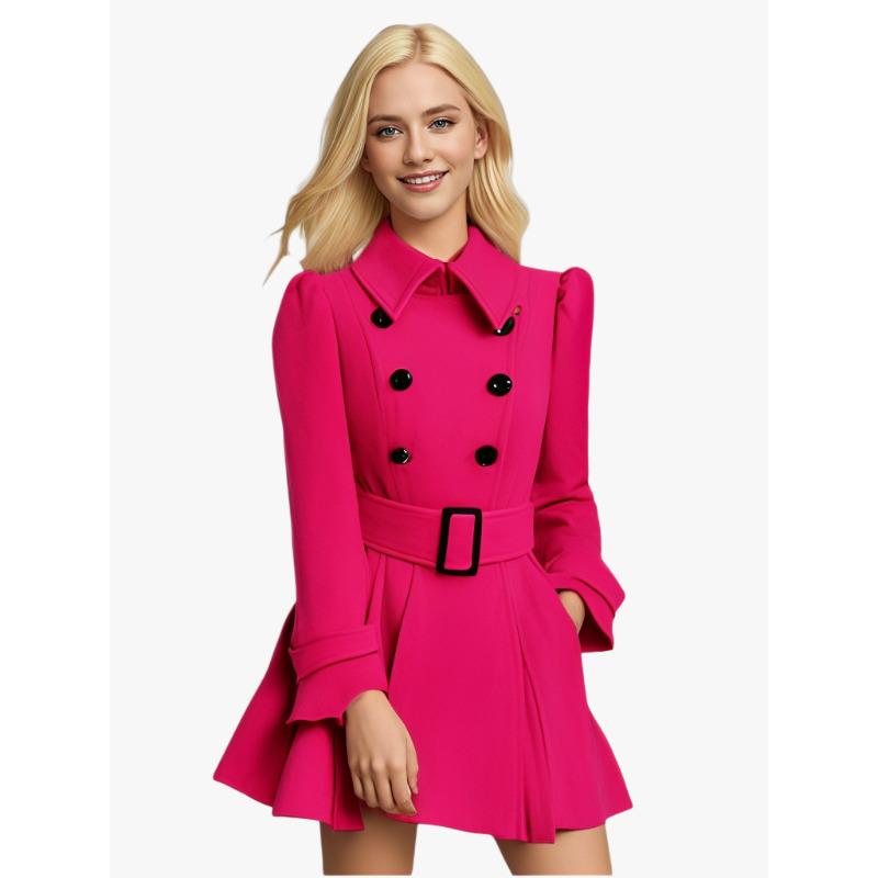 Осень и зима Новая женская одежда Приталенный вариант шерстяное пальто с пряжкой на поясе шерстяное пальто XXL