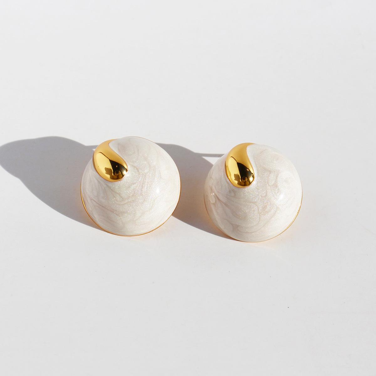 Осень и зима Новые круглые серьги-гвоздики ручной работы с эмалью Майяра коричневого цвета, женские серьги с жемчужно-белой глазурью