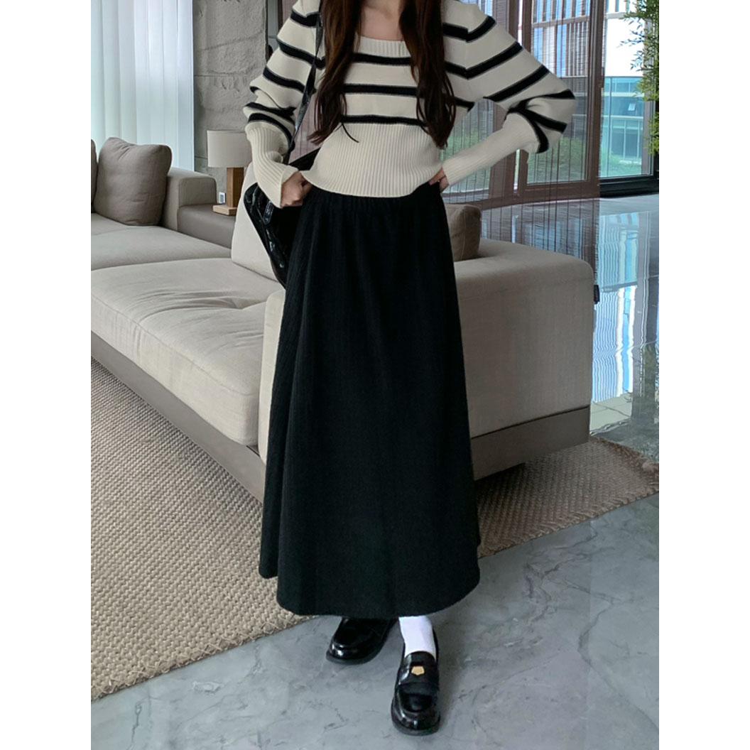 Осень-зима Утолщенные плюшевые юбки А-силуэта Повседневная длинная юбка с высокой талией Ленивый стиль Винтажные юбки миди XXL чёрный