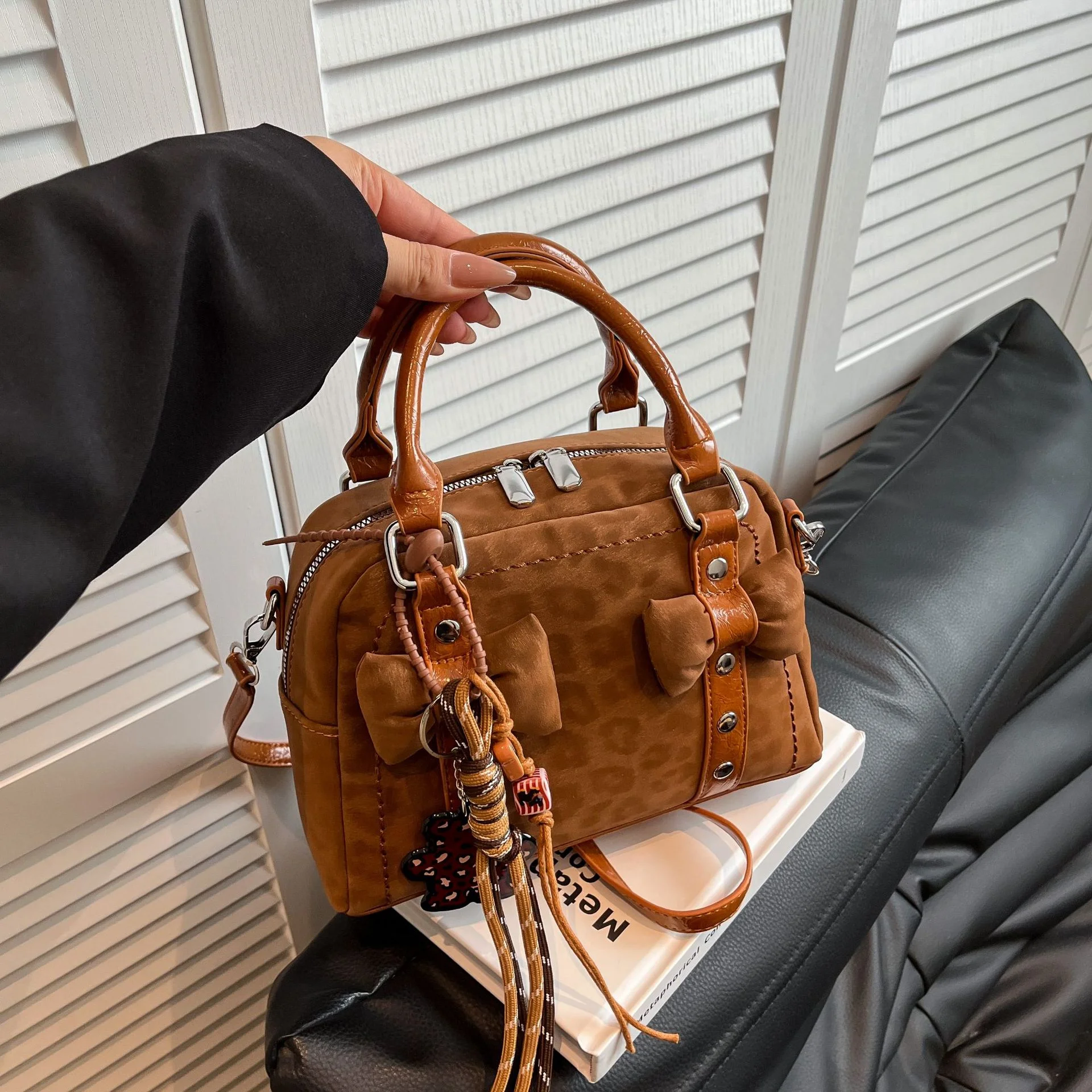 Осень-зима, винтажная сумка с леопардовым принтом, шикарная женская сумка с бантом во французском стиле, новинка 2023 года, универсальная сумка через плечо, трендовая сумка-подушка
