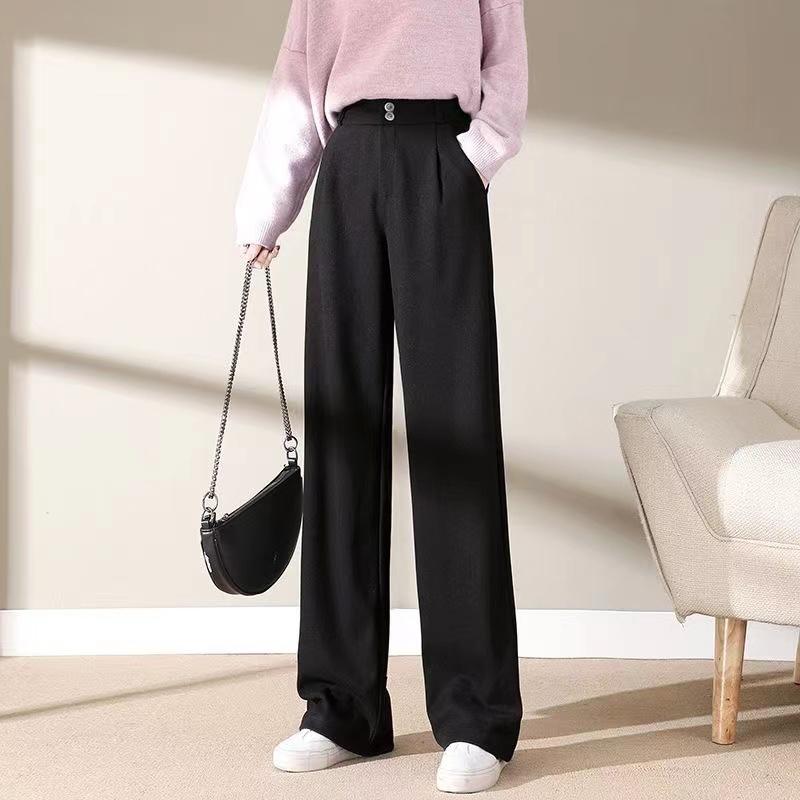 Осень-зима женские лаконичные шерстяные брюки женские широкие дизайнерские брюки женские утепленные брюки с высокой талией S чёрный