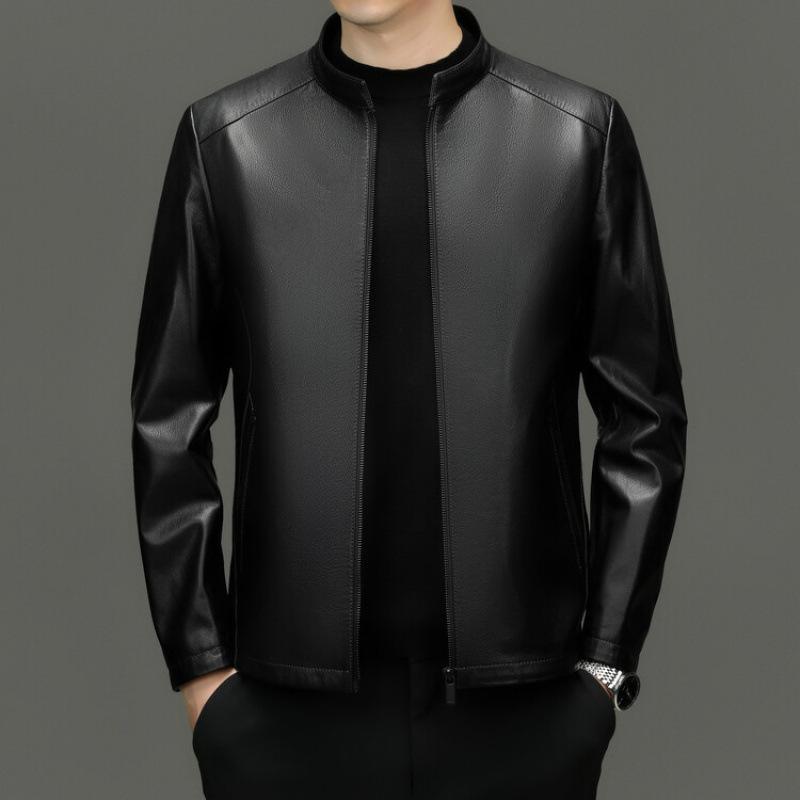 Осень и зима кожаная кожаная куртка мужская повседневная большого размера воловья кожа верхняя кожа локомотив стойка воротник кожаная куртка 48 чёрный