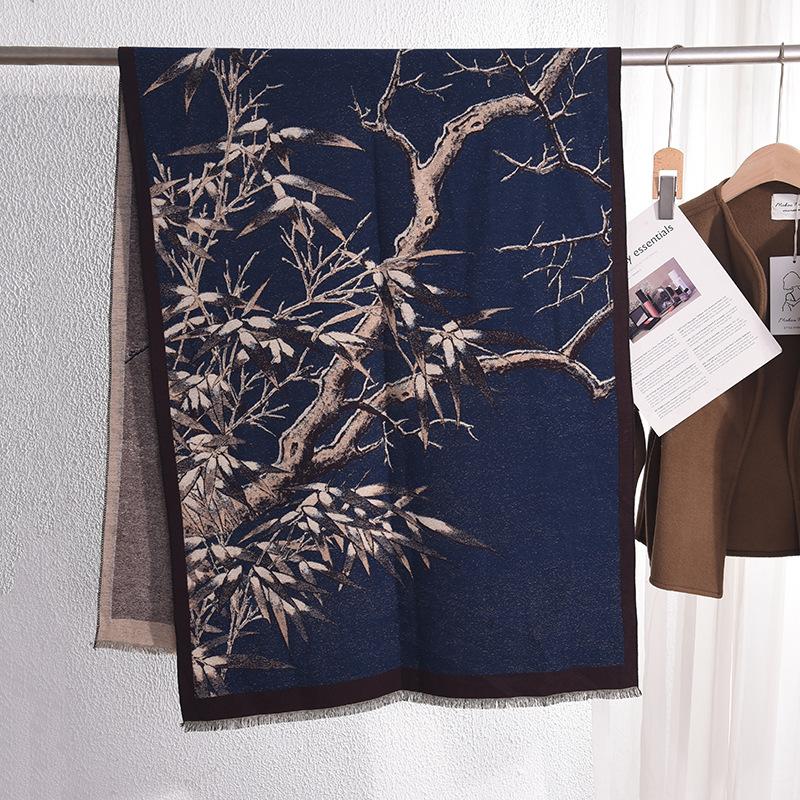 Осень и зима литературный стиль ретро элегантный шарф с принтом ветвей женский модный темперамент с высоким чувством теплая шаль 67*185