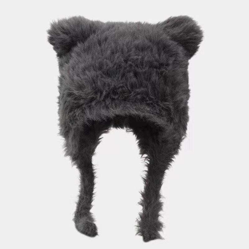 Осень и зима милая плюшевая шапка-медведь женская плюшевая утолщенная теплая имитация кроличьего меха ветрозащитная защита ушей шапка 52-56cm серый