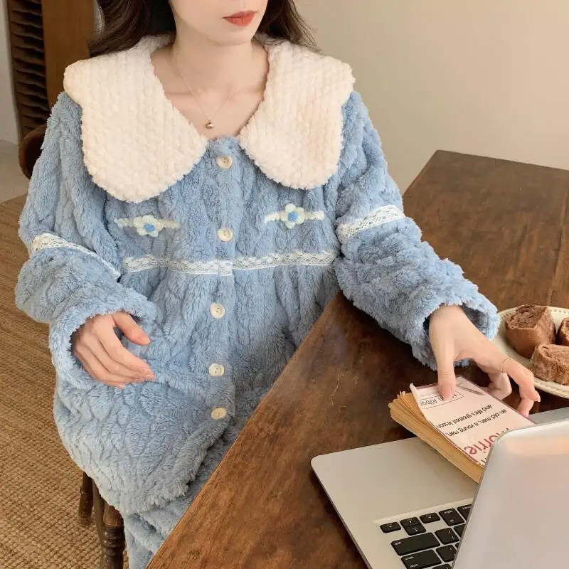 Осень-зима, милый пижамный костюм, женская домашняя одежда, фланелевая печать, сохраняющая тепло, новая одежда для сна, милая утепленная ночная рубашка из кораллового флиса