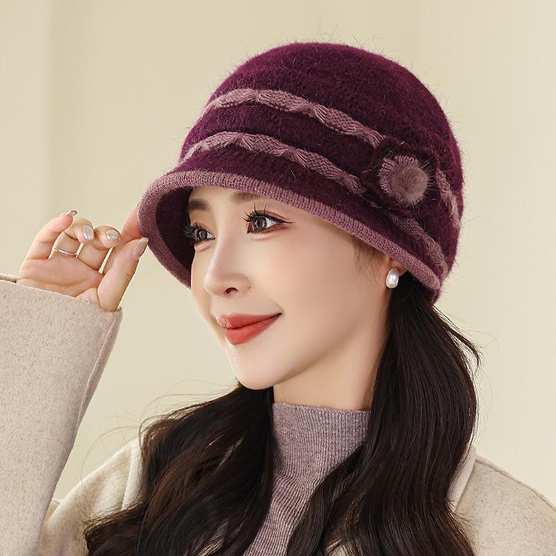 Осень-зима мягкая плюшевая вязаная шапка для женщин и девочек, теплая утолщенная флисовая подкладка, шапочки с короткими полями, повседневная уличная ветрозащитная шапка One size темно-фиолетового