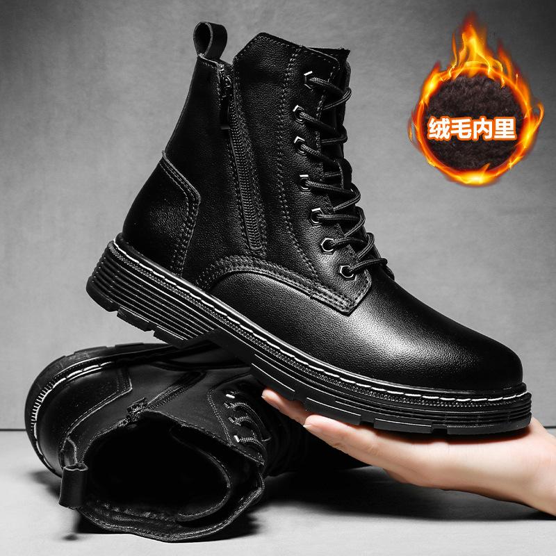 Осень и зима новая большая размерная мужская кожаная рабочая обувь Мартин, кожаные ботинки с боковой молнией, бархатная теплая мужская обувь 48