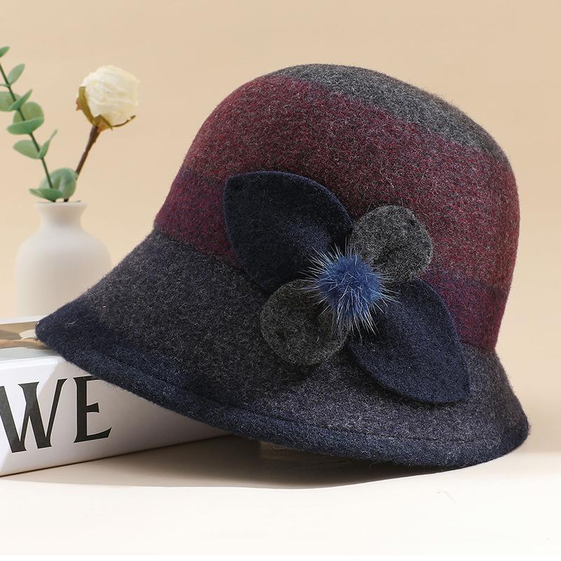 Осень и зима новая британская ретро шерстяная шляпа-котелок утолщенная теплая темпераментная шляпа-цилиндр с цветком зимняя шляпа-рыбак one size fits all