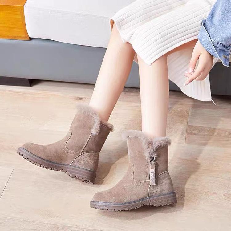 Осень и зима новая замшевая плоская подошва бархатные утолщенные теплые женские туфли женские ботинки кожаные ботинки хлопковые ботинки короткие зимние ботинки 40 хаки