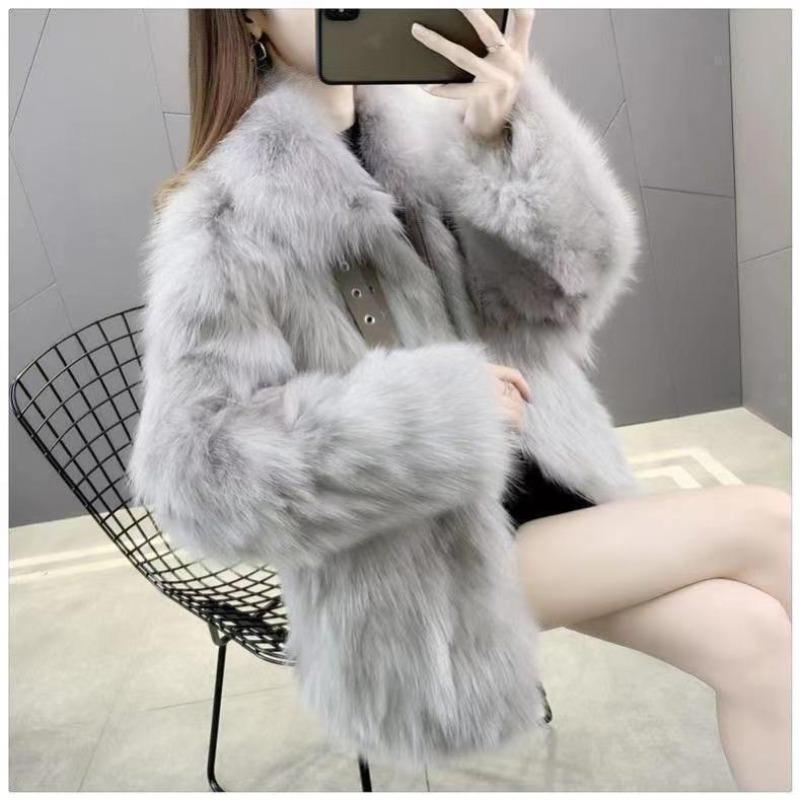 Осень и зима новая имитация лисьего меха молодежная имитация шубы женская шуба модная и тонкая 4XL светло-серый