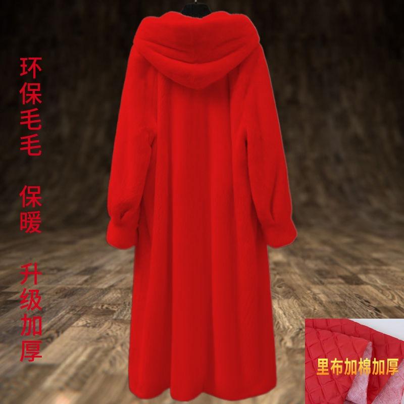 Осень и зима новая имитация норкового флиса шуба свободная с капюшоном до колена средней длины большого размера пальто женское S (80-51 kg)