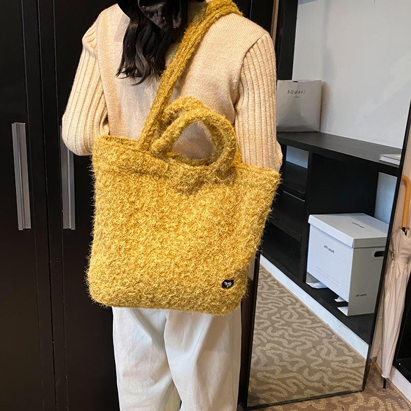 Осень и зима новая плюшевая мягкая восковая сумка на плечо сумка подмышку большая вместимость двойного назначения сумка-тоут для通勤 44*10*32 жёлтый