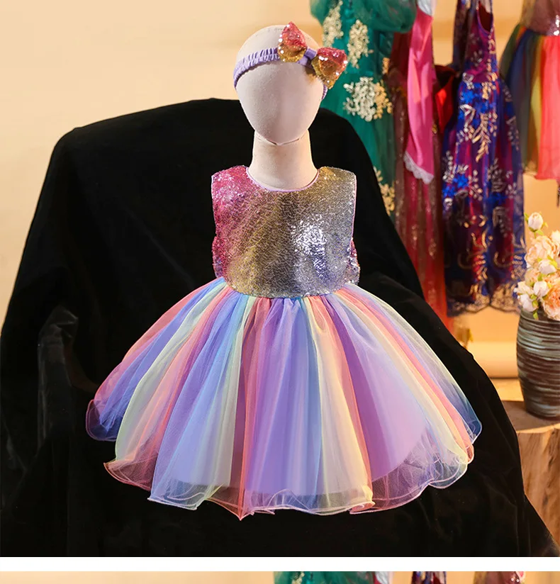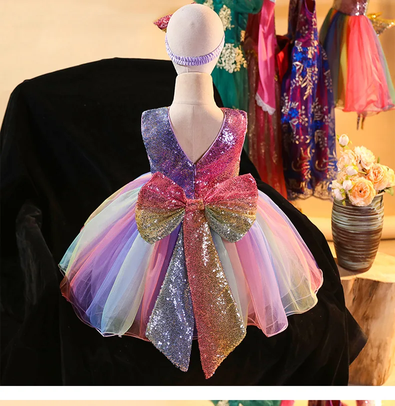 Осень-зима новое Блестки Кружева платье-пачка для девочек вечерние принцессы; Свадебное платье с цветочным узором + повязка на голову, комплект из 2 предметов, платье на день рождения; Одежда; Бальное платье для детей 1-5 лет