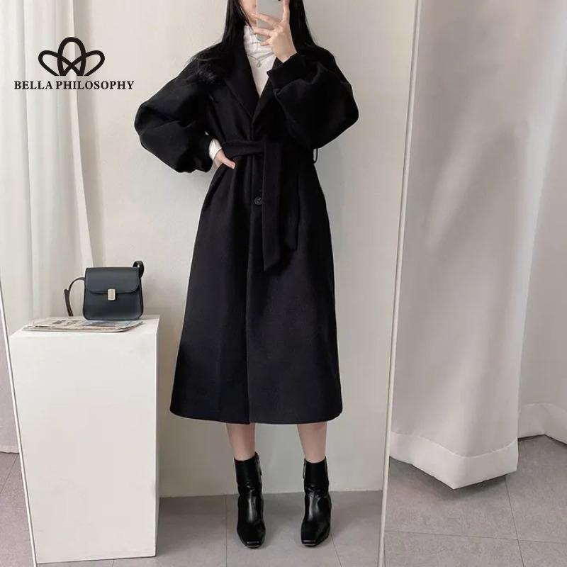 Осень-зима, новое нишевое простое шерстяное пальто с узкой талией, корейское повседневное свободное утолщенное теплое шерстяное пальто выше колена