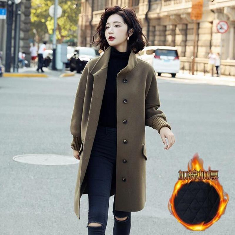 Осень и зима новое шерстяное пальто дракон и феникс женское длинное до колена свободное и тонкое популярное шерстяное пальто высокого класса для женщин M синий