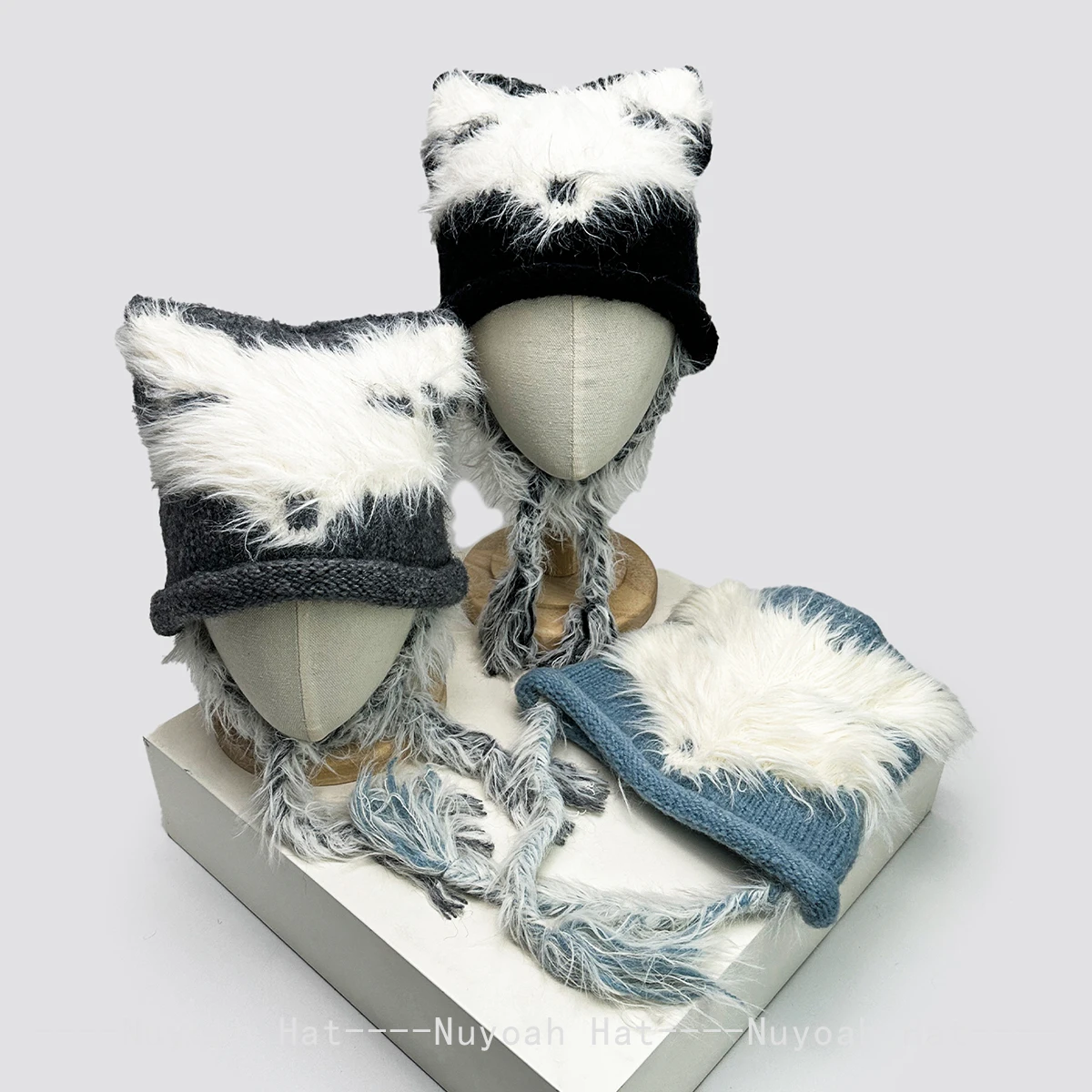 Осень и зима, новые женские милые плюшевые шапки с ремешками из лисы, теплые персональные солнцезащитные козырьки, уличные вязаные шапки, модные повседневные универсальные ins