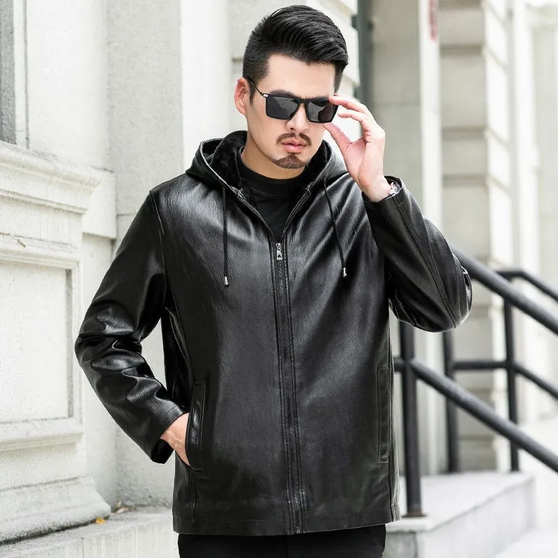 Осень-зима, новый стиль, теплая кожаная куртка с капюшоном, мужская меховая интегрированная бархатная утолщенная мотоциклетная кожа