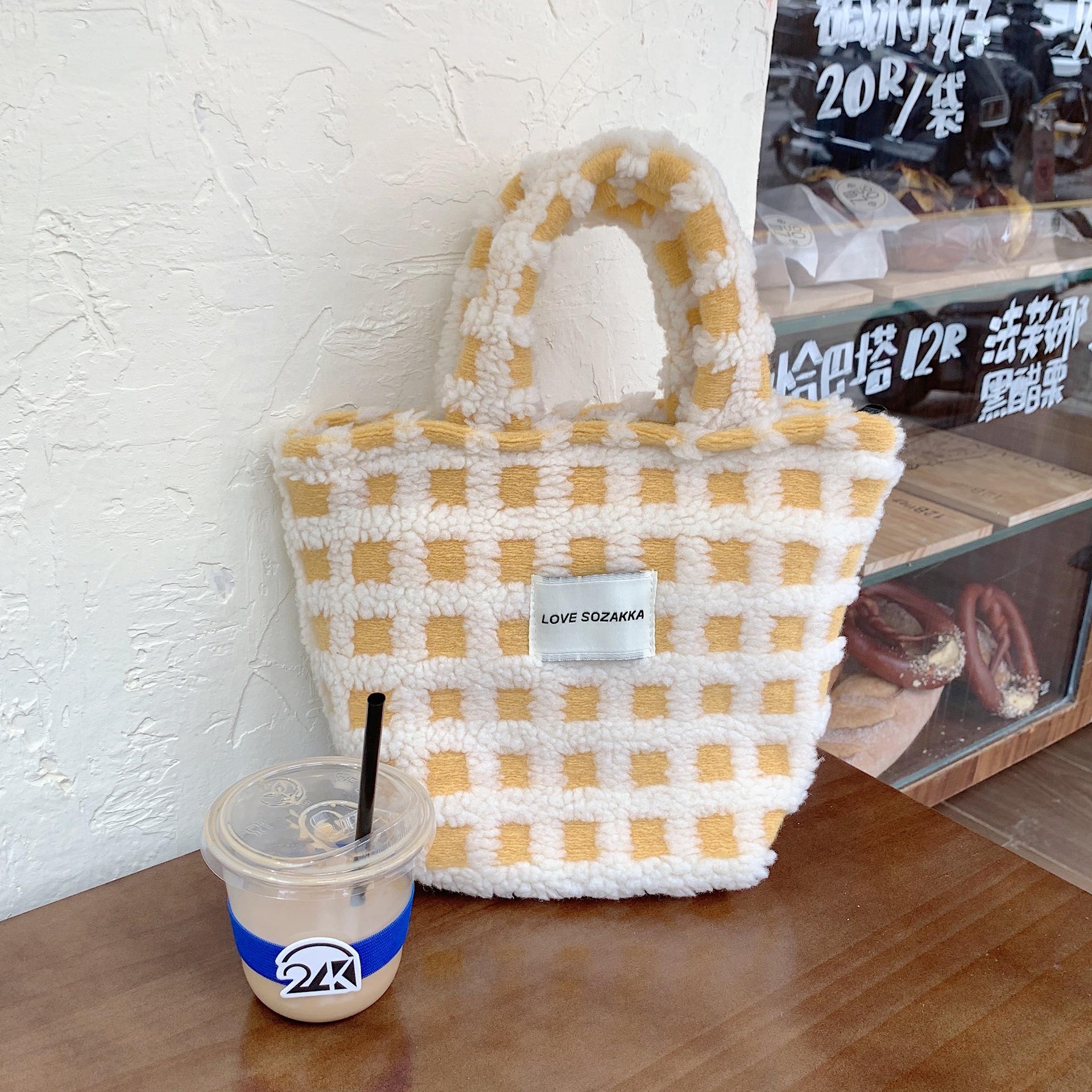Осень-зима овечья шерсть вафельная милая ручная большая сумка женская портативная сумка большой емкости OneSize жёлтый