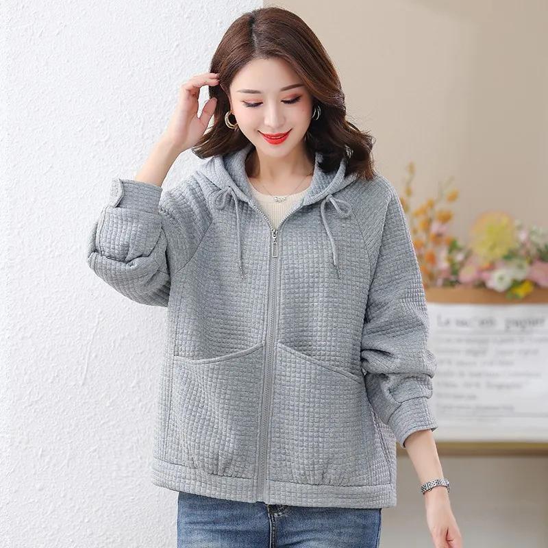 Осень и зима плюс бархатная толстая свитерная куртка женская свободная большого размера тонкая вафельная высококачественная теплая хлопковая куртка S серый
