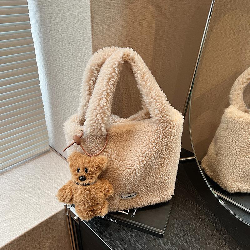 Осень и зима плюшевая сумка женская 2025 новая нишевая модная сумочка для поездок на работу универсальная сумка-мессенджер из овечьей шерсти