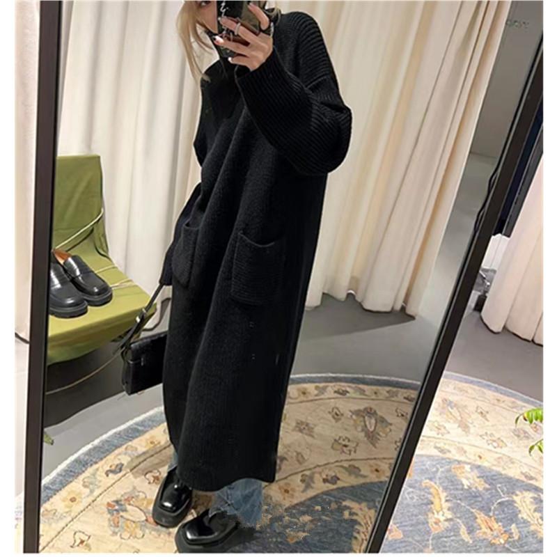 Осень и зима свободный и ленивый темперамент длинное платье водолазка свитер базовая рубашка с пальто вязаная юбка толстая one size fits all чёрный