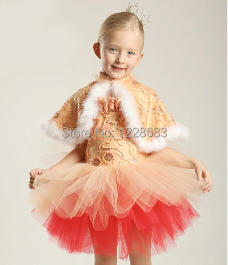 Осень-зима сценические балетные костюмы с цветочным узором для девочек свадебное платье для девочек, вечерние платья для детей ясельного в...