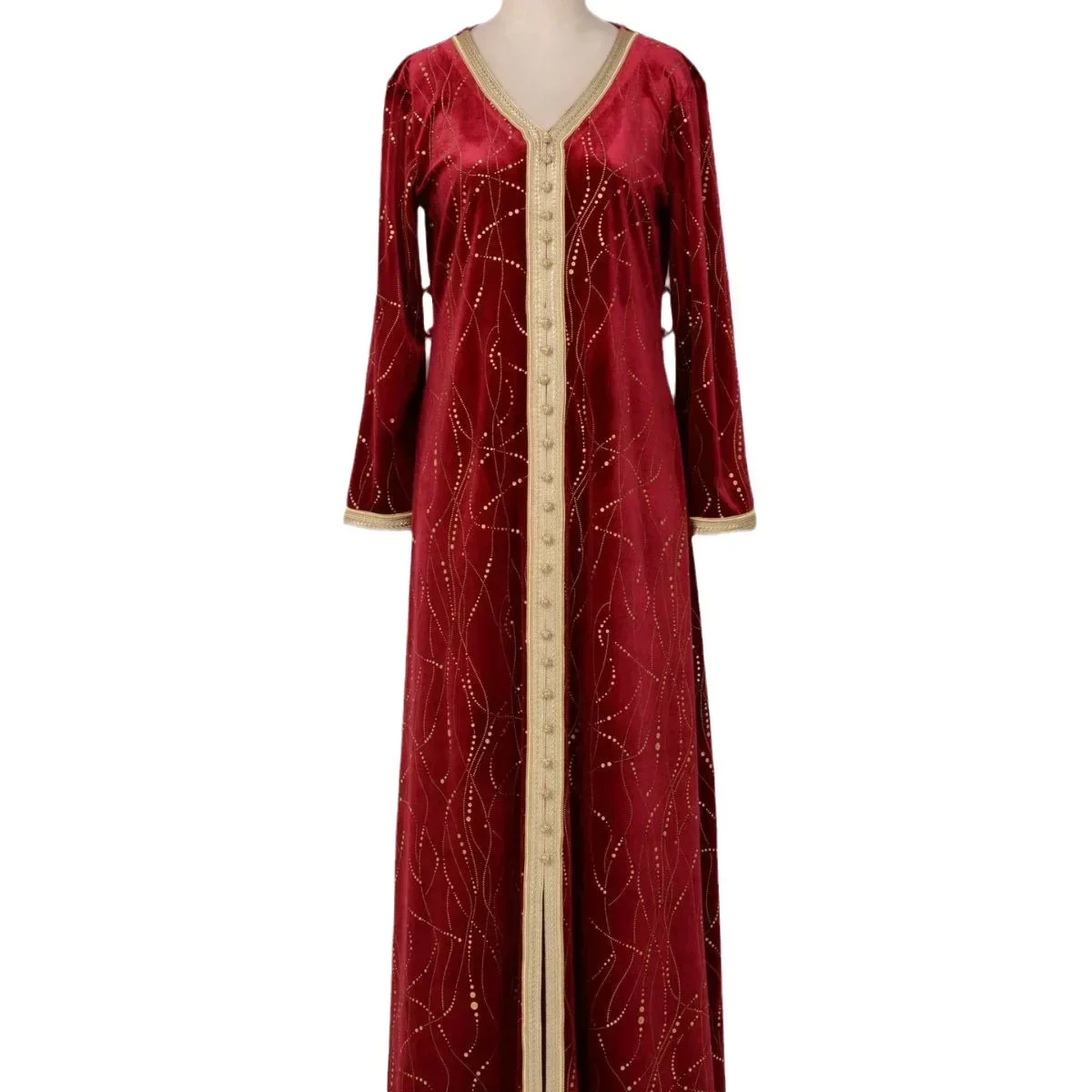 Осень-зима теплое вельветовое длинное платье мусульманское платье Турция мусульманские платья Абая женское вечернее платье элегантное Абая с поясом