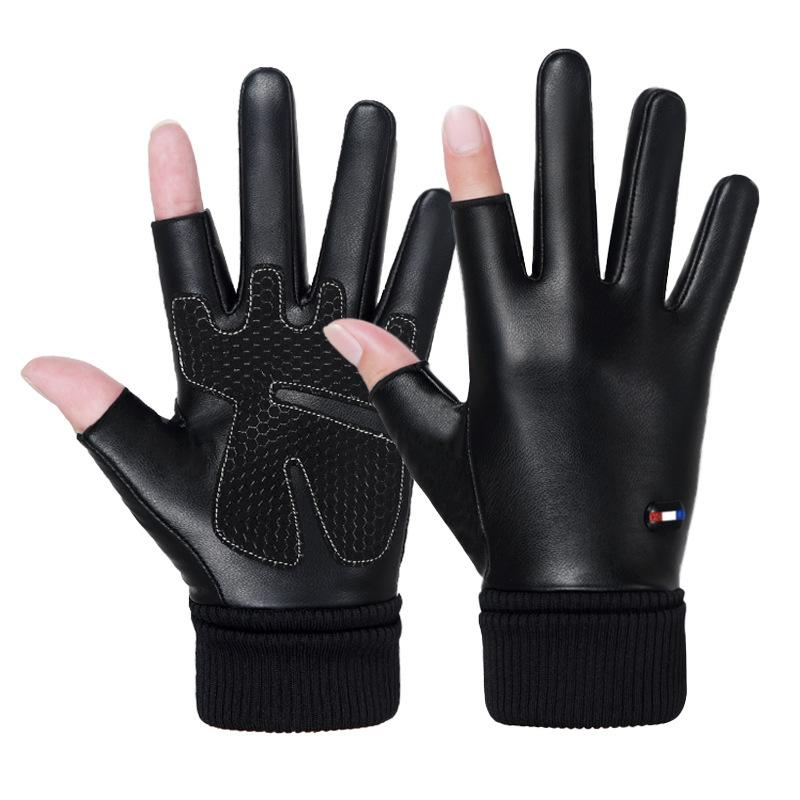 Осень и зима теплые бархатные кожаные перчатки мужские роса два пальца ветрозащитные водонепроницаемые велосипедные нескользящие мотоциклетные для улицы альпинизм average size