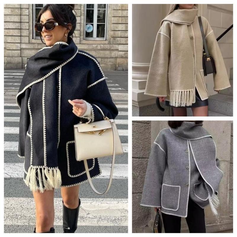 Осень-зима элегантное женское пальто с шарфом женское длинное рукав карман однобортное пальто новая женская верхняя одежда куртка S