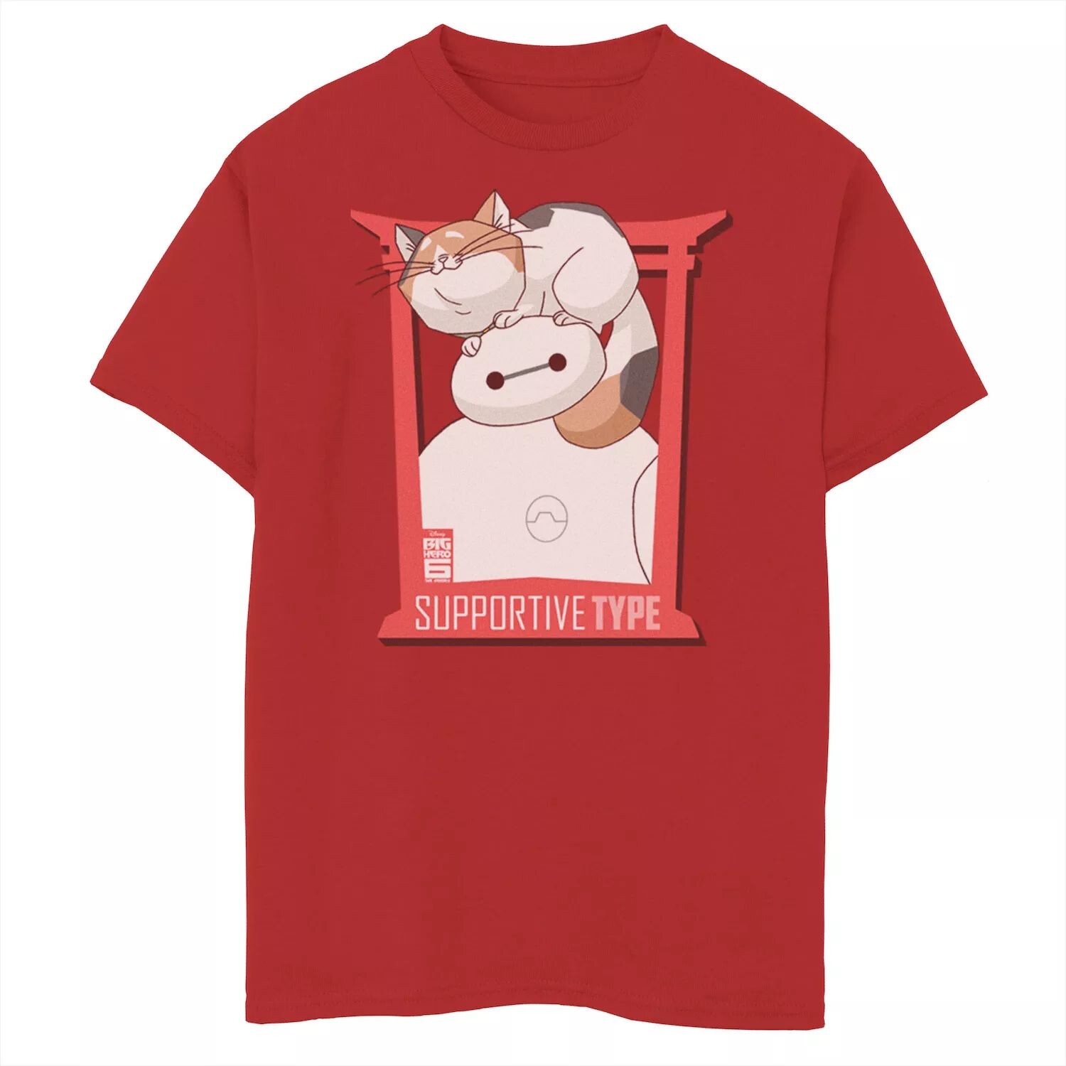 Футболка Disney's Big Hero 6 с рисунком Baymax и Cat для мальчиков 8–20 лет, телесериал Disney, красный