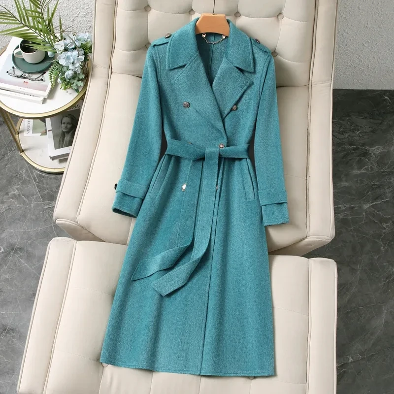 Осень-зима 2022, новое длинное шерстяное пальто выше колена, женское корейское пальто с поясом, теплые двусторонние шерстяные пальто